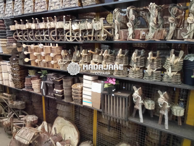 Cestaria, baús, cachepot’s e artigos artesanais rústicos.
